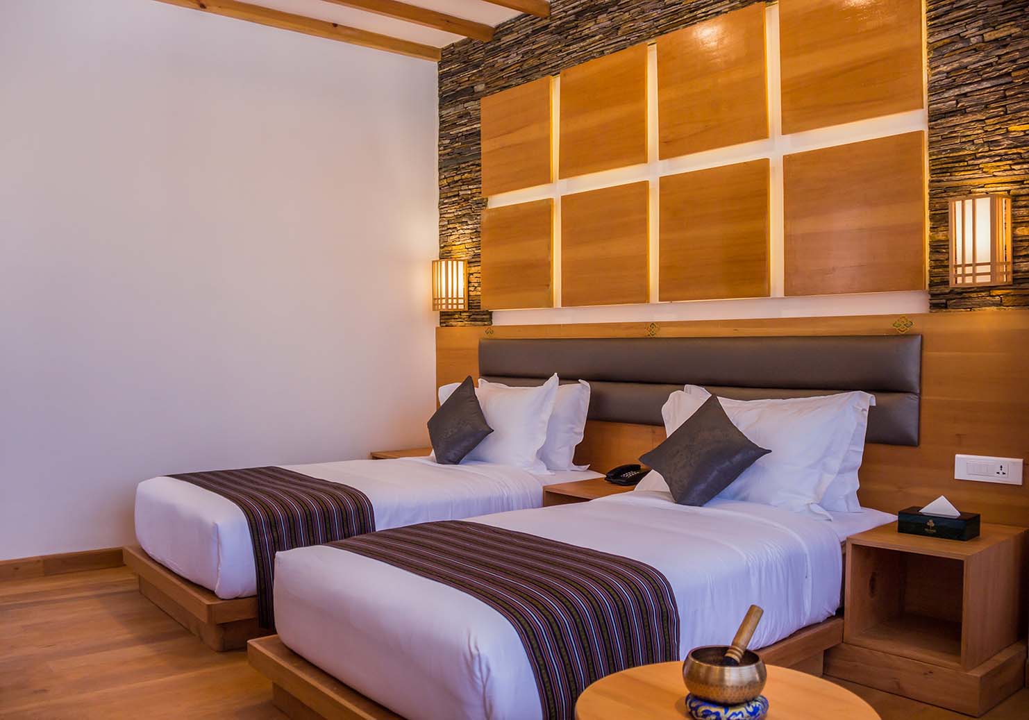 Peylang Boutique is a small celebration of good design and gentle service — an intimate property where every corner feels considered and every stay feels personal. The design language is modern with subtle Bhutanese touches: curated artwork, warm wood tones and soft textiles that invite a slow, restorative pace. Guest rooms are intimate havens with clear attention to comfort and style, while public spaces invite quiet reading, small gatherings and restful pauses. Located within easy reach of Thimphu’s main attractions, Peylang is perfectly positioned for guests who want to explore by day and return to a calm, tailored environment by night. The staff deliver service that feels handcrafted — friendly, discreet and intuitive — so small requests are handled with warmth. Peylang is a favourite for travellers who appreciate a boutique atmosphere where service and design meet quietly elegant standards.